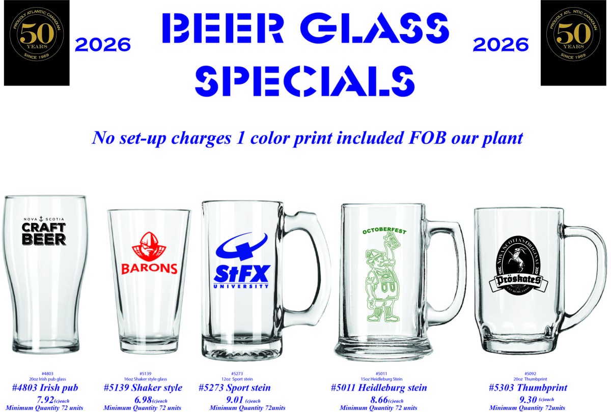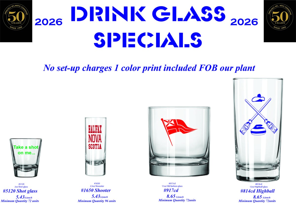 Welcome to our retail priced website. Established in 1969, Jym Line Glassware has been custom decorating drinkware for over 50 years. Jym Line Glassware was founded by Jim and Lynda Adams and started out of their home, moving into a production facility in 1971 in North End Halifax. Two expansions later we are now in our current location in Elmsdale, Nova Scotia. Jym Line now is into it’s second generation of ownership under Tom Adams with a 3rd generation following behind.
